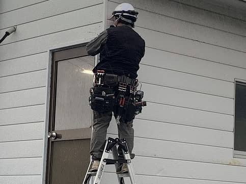 施工においては、単にセンサーを設置するだけでなく、ポンプのサーマル(過負荷)トリップや異常高水位(HH)を検知して作動する専用の制御回路を設計・構築。これにより、トラブル発生時に「積層信号灯(パトライト)」が点灯し、異常を報知できるようにいたしました。制御盤内には誤作動防止のタイマーや自己保持回路を組み込み、信頼性高く仕上げました。