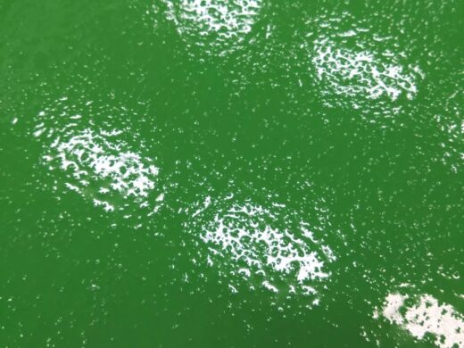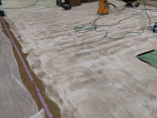 既存塗膜の剥がれを防ぐ「はつり処理」、防滑性を高めるケイ砂を混入させた塗料を1層塗りという滑り止め塗床工事をご提案。